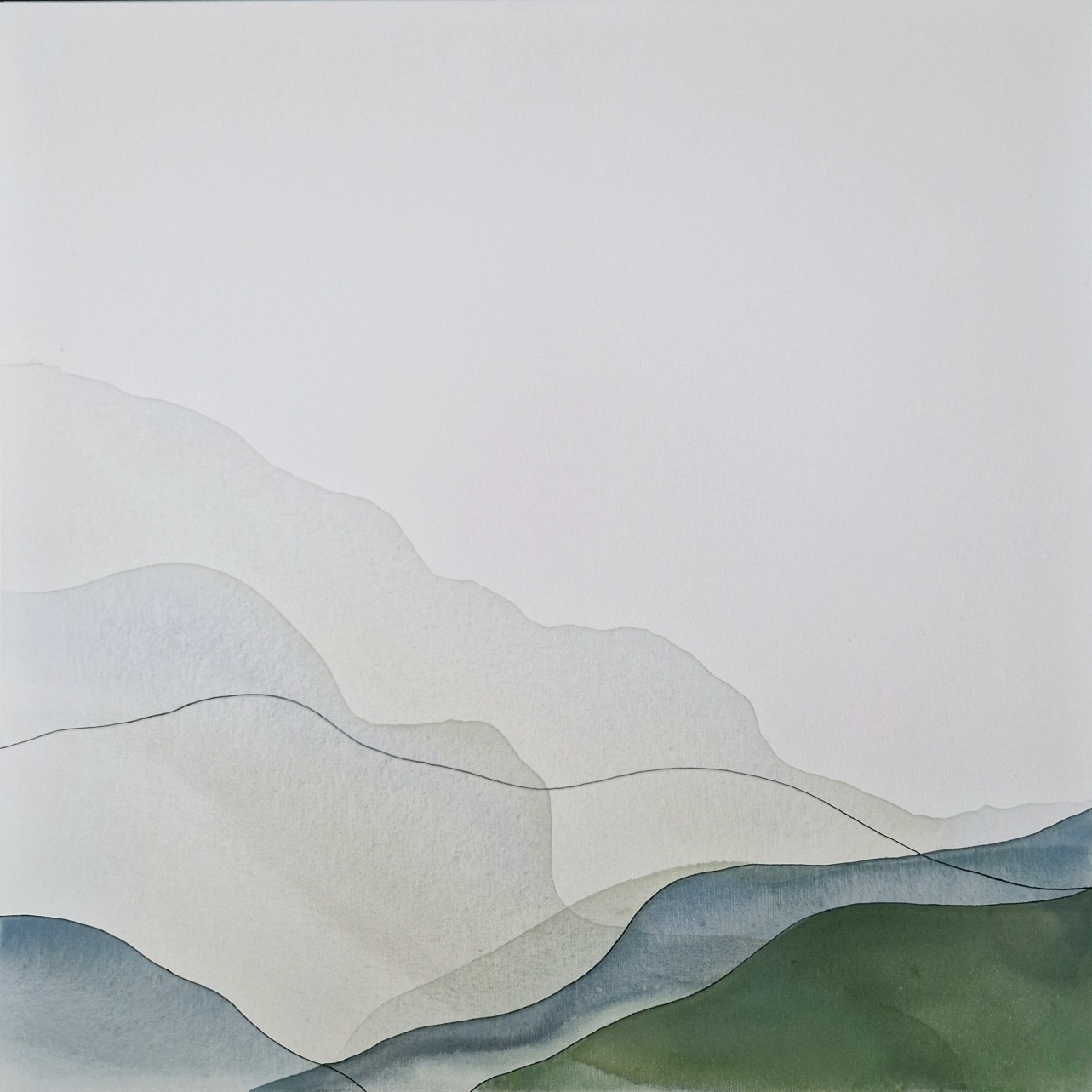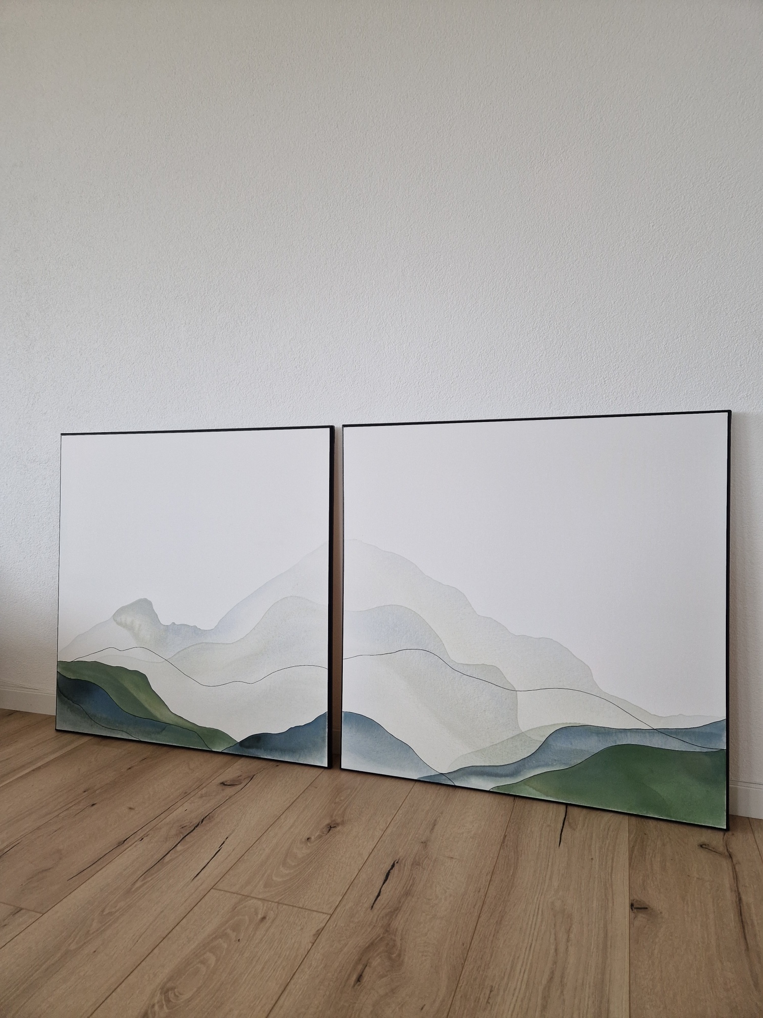 Swiss PeaksAcrylic paint on canvas Waterpainting, with black touches Green and blue colors and blackDimensions 2x 80cmx80cm Price 2400PREVSuspended BlueNEXTSage